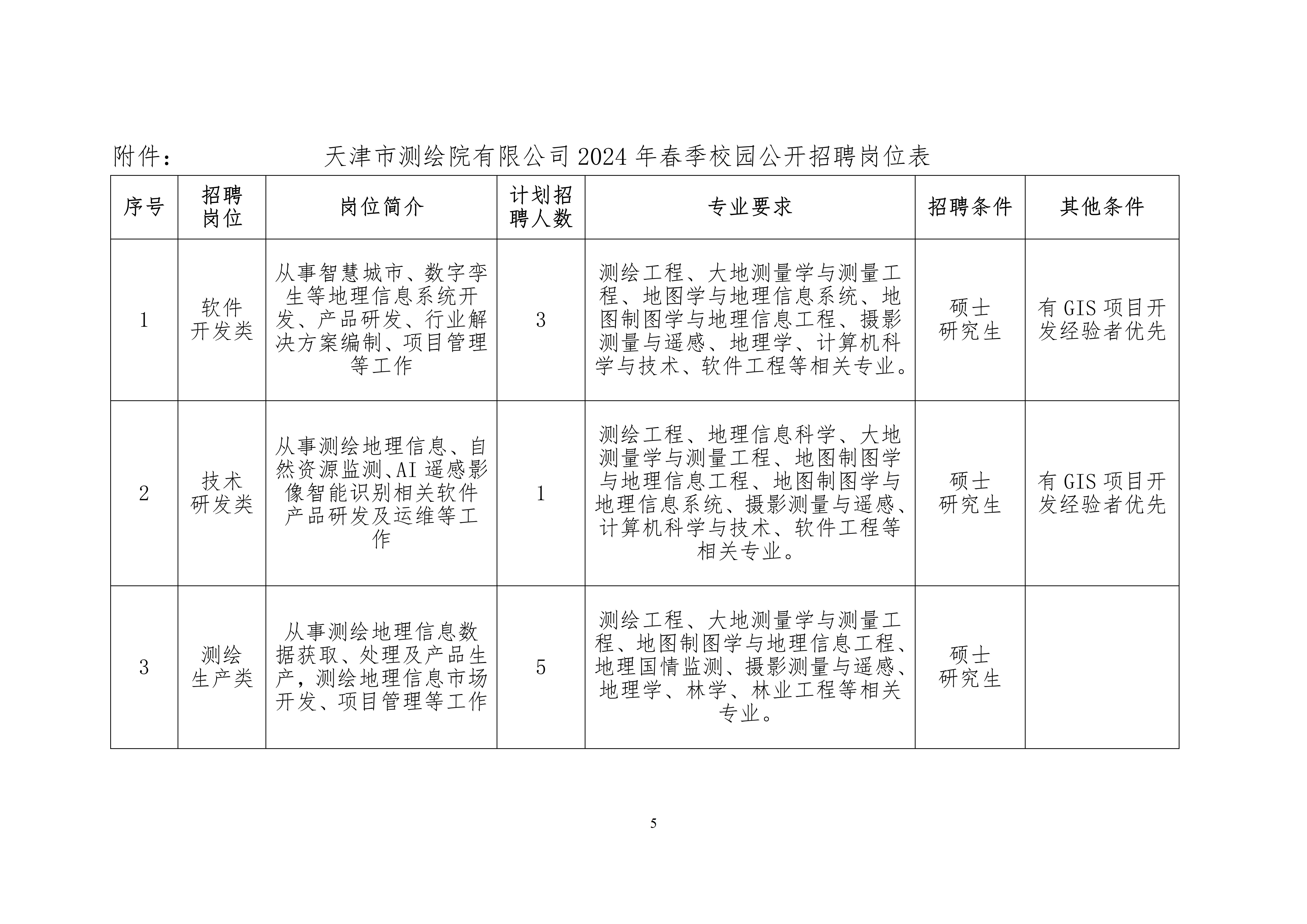 天津市測繪院有限公司2024年春季校園公開招聘公告 2024-04-07
