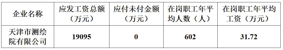 天津市測繪院有限公司2022年度工資總額信息披露 2023-09-22